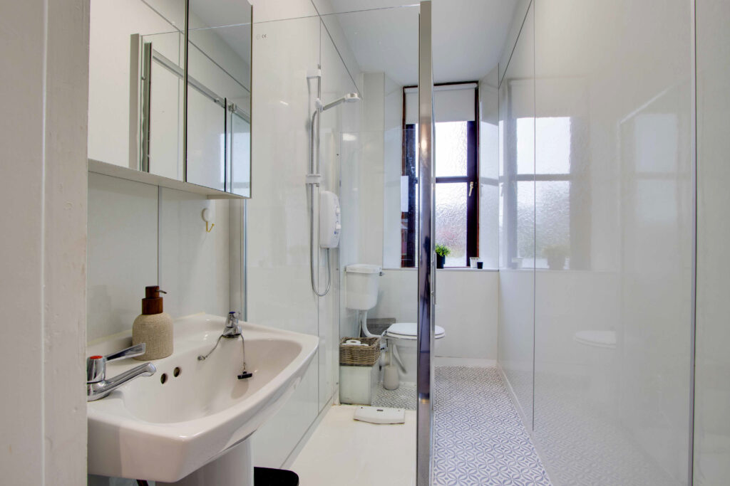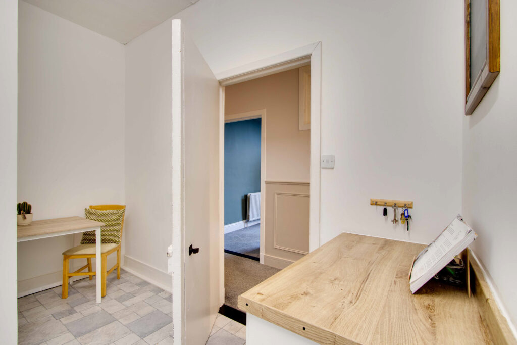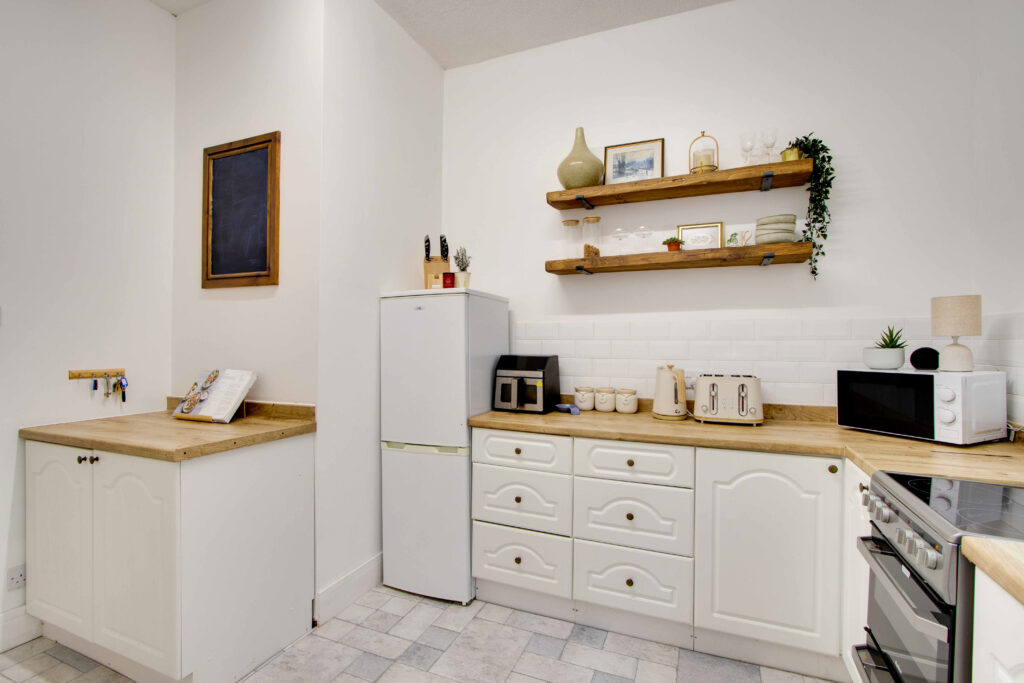 The property boasts two double bedrooms and a single bedroom/nursery, along with a modern shower room featuring a large contemporary shower cubicle. The stylish kitchen/dining area is designed for practicality and can accommodate a small table and chairs, while the spacious lounge is filled with natural light, creating a warm and welcoming atmosphere.
