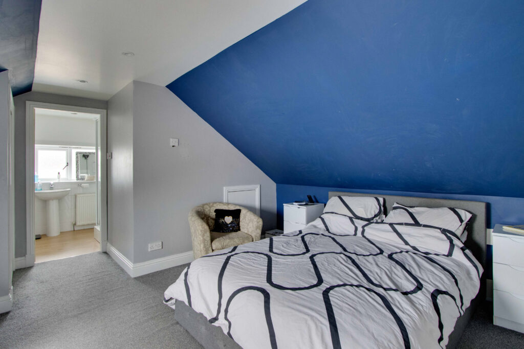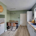 The ground floor features a welcoming entrance porch and hallway leading to a bright lounge with a bay window, Karndean flooring, and a slate fireplace with wood-burning stove. The spacious kitchen/dining area is fitted with a range of modern base and wall units and includes a Flavel Range-style cooker, complemented by a utility room leading to a WC/cloakroom. Two ground-floor bedrooms, one of which benefits from an en-suite, offer versatile living options.  The upper floor offers three further double bedrooms, including a master with en-suite shower room, a family bathroom, and generous storage throughout.