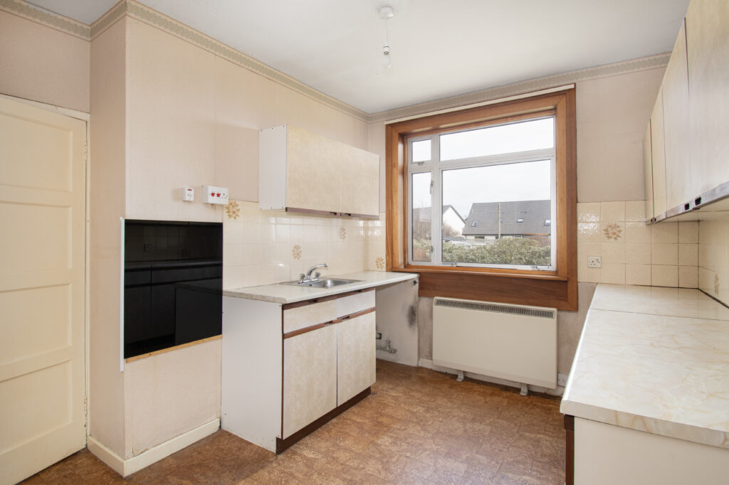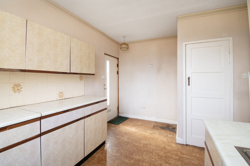 The accommodation comprises lounge, three bedrooms, a kitchen, and a bathroom, all of which would benefit from modernisation, offering a blank canvas for renovation and improvement.