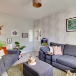 Externally, the front garden is laid to lawn with gravel chips and communal pathway (potential for off-street parking subject to planning etc). The generously proportioned and fully enclosed rear garden includes a lawn, timber shed, and brick outhouse.