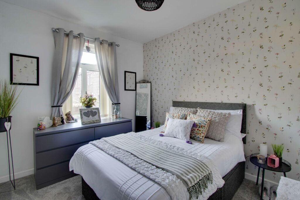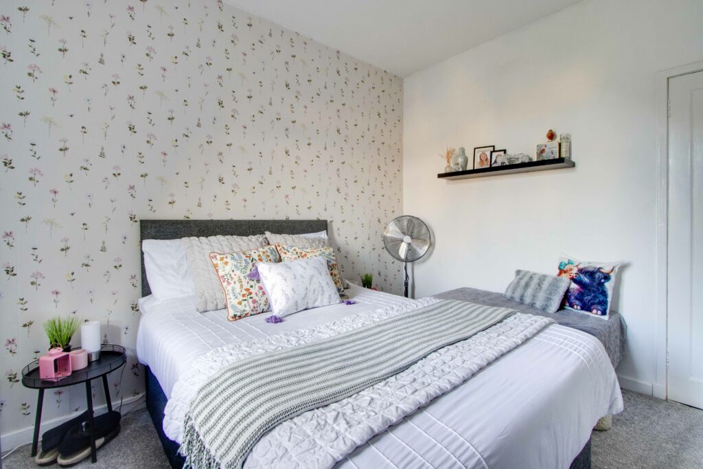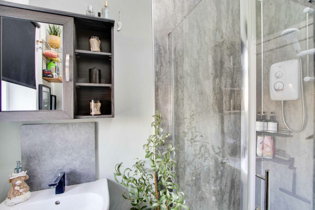There are two double bedrooms with large cupboards and a modern shower Room with WC, basin, and large shower cubicle.