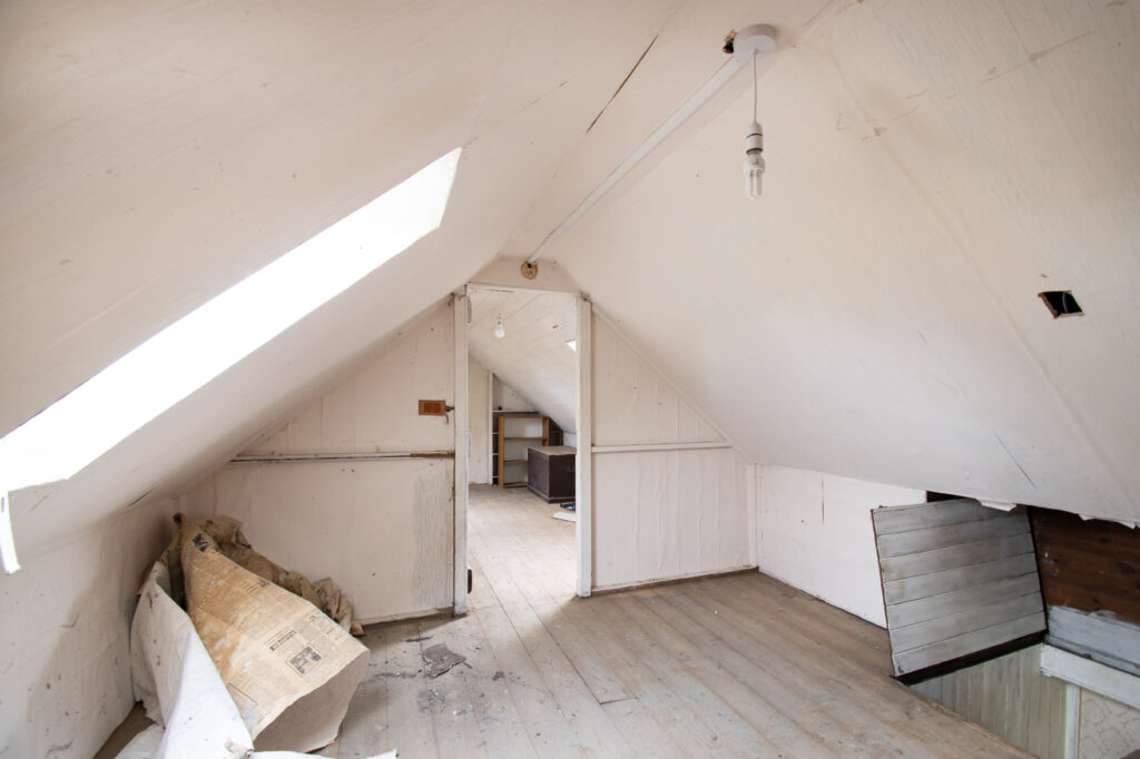 Generously proportioned attic currently divided into two rooms.
