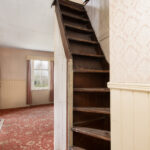 mantle. Staircase to attic space.