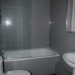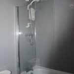 There is a double bedroom with ample built-in storage, along with a bathroom featuring a shower over the bath.