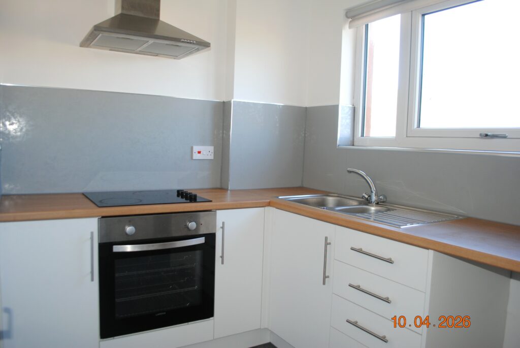 The kitchen includes an integrated oven and hob, offering a modern and practical cooking space.